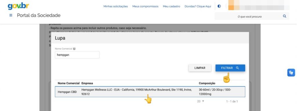 Neste estágio, você entrará na seção que trata especificamente dos produtos à base de canabidiol que deseja importar. É crucial ler todas as orientações fornecidas no site com atenção, pois elas contêm detalhes específicos sobre como proceder.