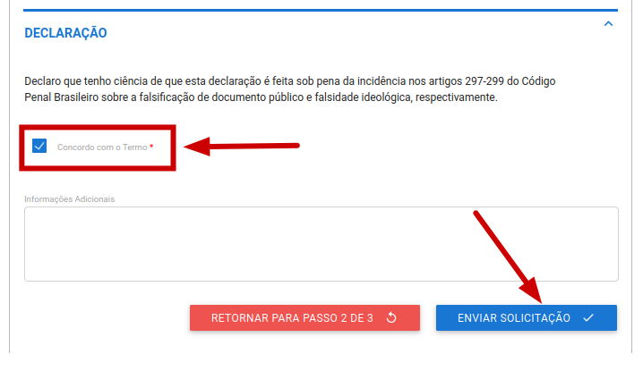 - Concordância com o Termo: Localize a opção que indica que você concorda com os termos e condições apresentados. Esta é geralmente uma caixa de seleção que você deve marcar, confirmando que você entende e aceita todas as obrigações e responsabilidades descritas no termo.
