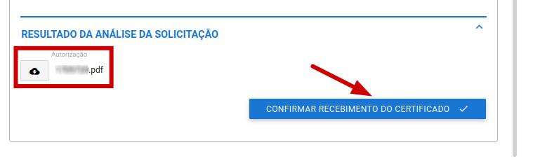 - Confirmação de Recebimento: Após revisar o certificado, você geralmente encontrará uma opção no sistema para confirmar o recebimento do documento. Clique em “Confirmar recebimento do certificado”. Esta ação pode ser necessária para completar o processo e para registrar oficialmente que você está de posse do certificado necessário.