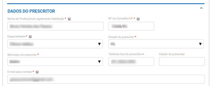 - Telefone Fixo ou Celular do Prescritor: Forneça um número de contato do médico, que pode ser telefone fixo ou celular.