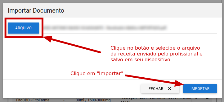 - Selecione o arquivo da receita no seu dispositivo.
